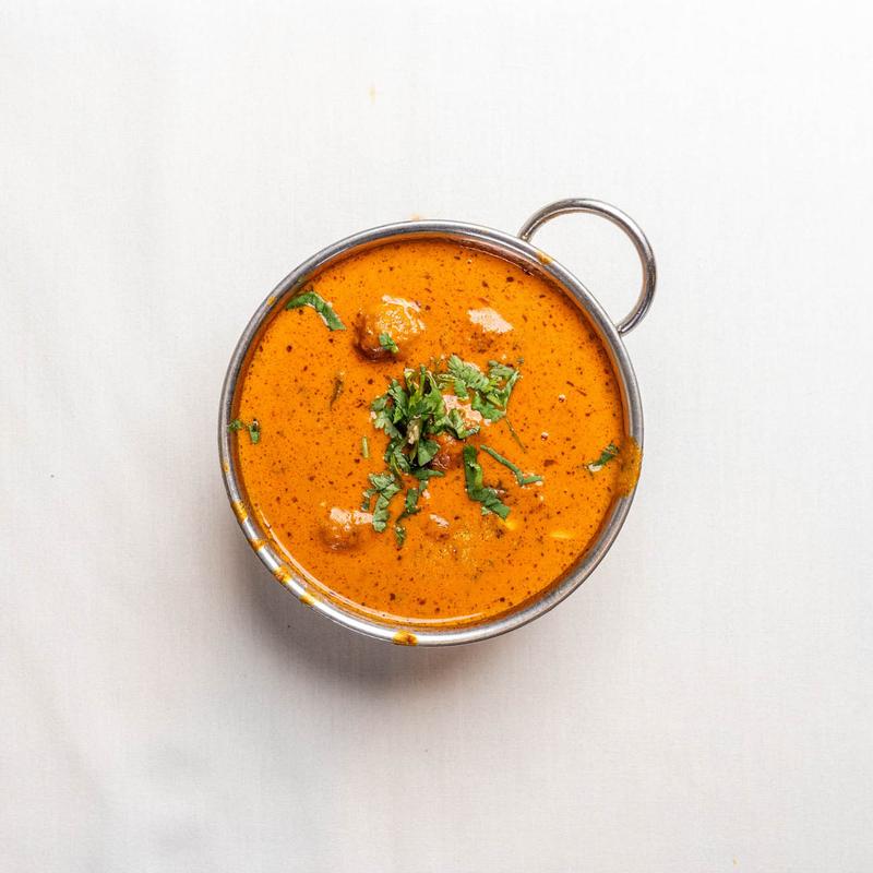 Regular $20.38 | Family $ 40.78 • A specific town in south India “Bezwada” style seasoned chicken cooked in Indian mild spicy gravy