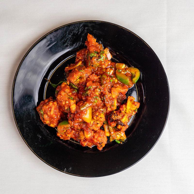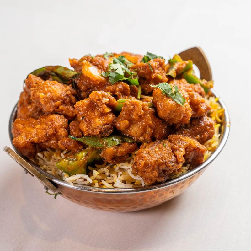 Deep fried chicken cooked in slightly spicy, sweet & sour Manchurian sauce