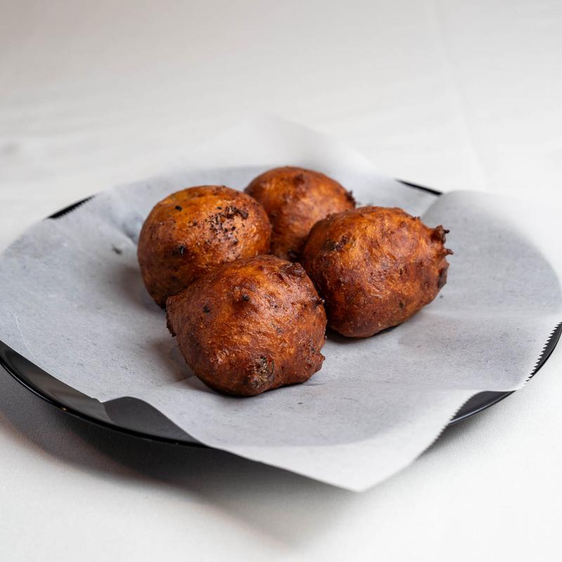 A mix of thinly chopped vegetables mixed with gram flour, and mild Indian seasonings and deep fired