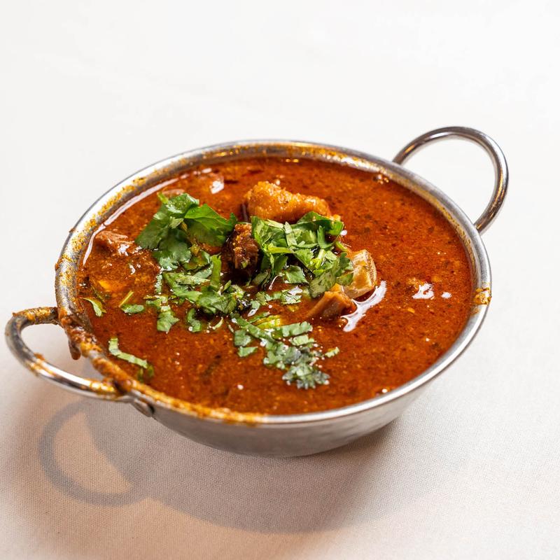 Regular $21.58 | Family $ 41.98 • “Mylavaram” style Seasoned goat meat cooked with Basmati Rice Biriyani